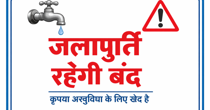 नागरिकों से अनुरोध है कि जलापूर्ति बाधित रहने की अवधि को ध्यान में रखते हुए आवश्यक जल का पूर्व में ही संग्रह कर लें।