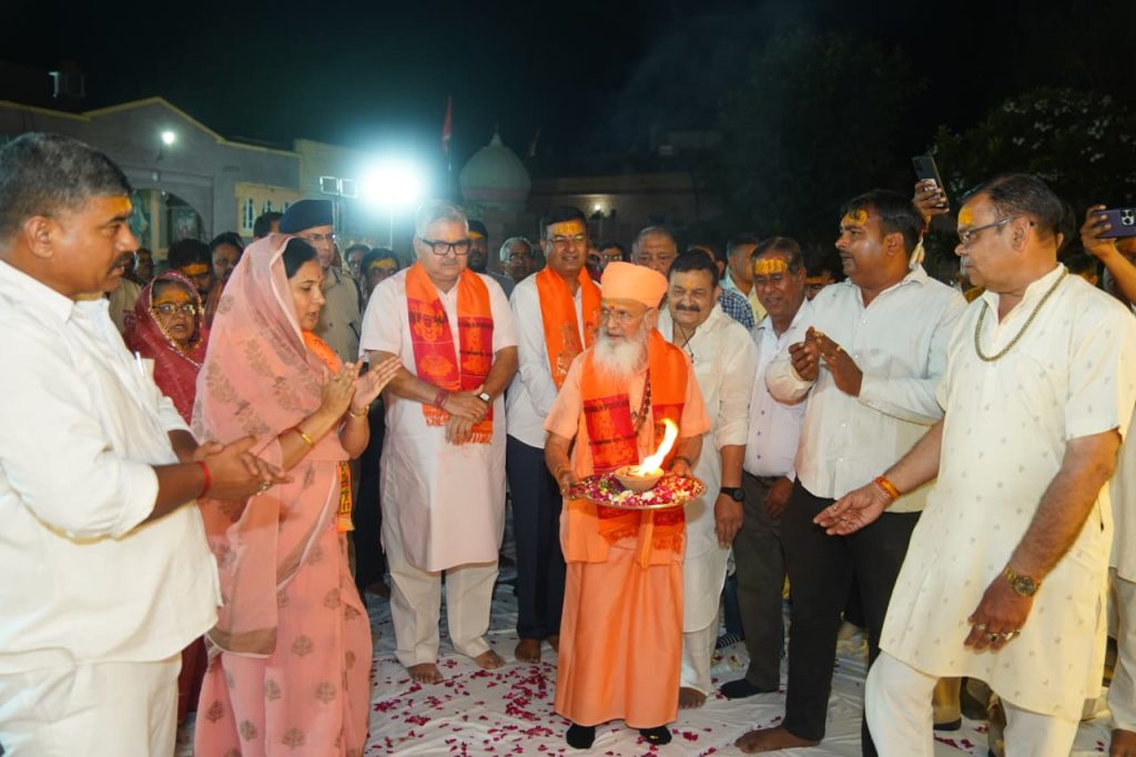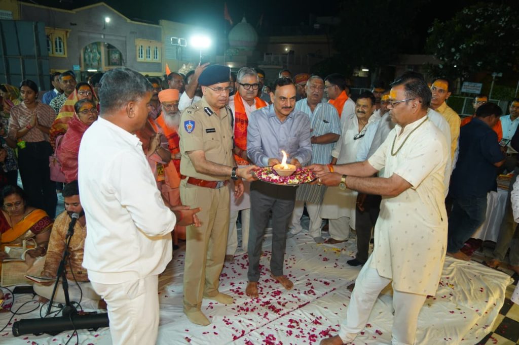 कार्यक्रम में जोधपुर संभाग के आईजी सत्येंद्र सिंह और पुलिस कमिश्नर शरत कविराज ने संतों और उपस्थित लोगों के साथ सामूहिक आरती कर विश्व कल्याण की प्रार्थना की।